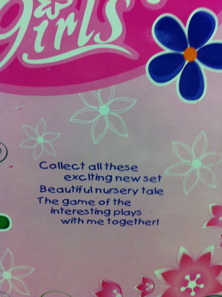 I sincerely apologize if anyone thinks it’s mean to laugh at “Engrish” (awkward translations). Please bear in mind that I don’t think it’s funny because I think “for’ners” are idiots, but because I know how difficult English is- think of it as a laugh of sympathy and understanding. Also, I imagine I’d do a lot worse if I was the one trying to translate from English into… well, any other language in all of ever.