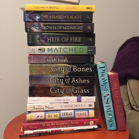According to Goodreads, I read/finished four books in April. The first was You Are A Badass, which was a quick, easy introduction to a lot of self-improvement stuff like overcoming hang-ups (big thing for me, still working on that whole fear of success deal), setting goals, affirmations, visualizations, etc. The casual tone was nice, save for the use of “rill” instead of “really,” which made me want to set the book down and back away slowly. I also read Nail Your Story by Monica Leonelle (interesting take on story structure with ideas and worksheets I’ll be using in the future), The Bear Went Over the Mountain by William Kotzwinkle (fun story a friend sent me ages ago and I finally had time to read), and The Winner’s Curse by Marie Rutkoski (lovely adventure/fantasy-with-no-magic romance. Slow to start, amazing twists and excitement by the end. Recommended to anyone who likes my stuff). Oh. I also read Hard as Ice by Victoria Barbour (another Newfoundland author). I liked Against Her Rules a little better, but it was a fun romance read with the same NL vibe as that one. I need to add that to GR…