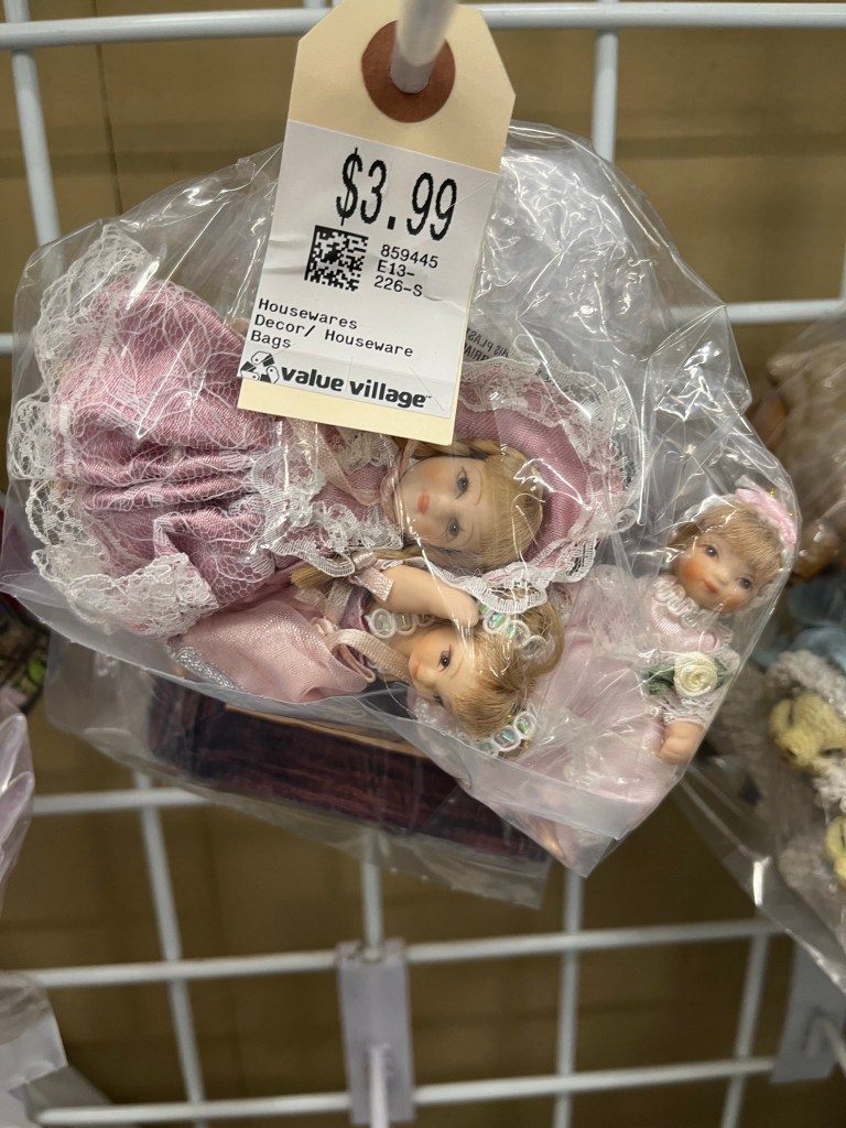 And I found dolls. Tiny dolls, first, that made me think it would be funny to buy them and start placing them randomly around the house to creep my husband out.