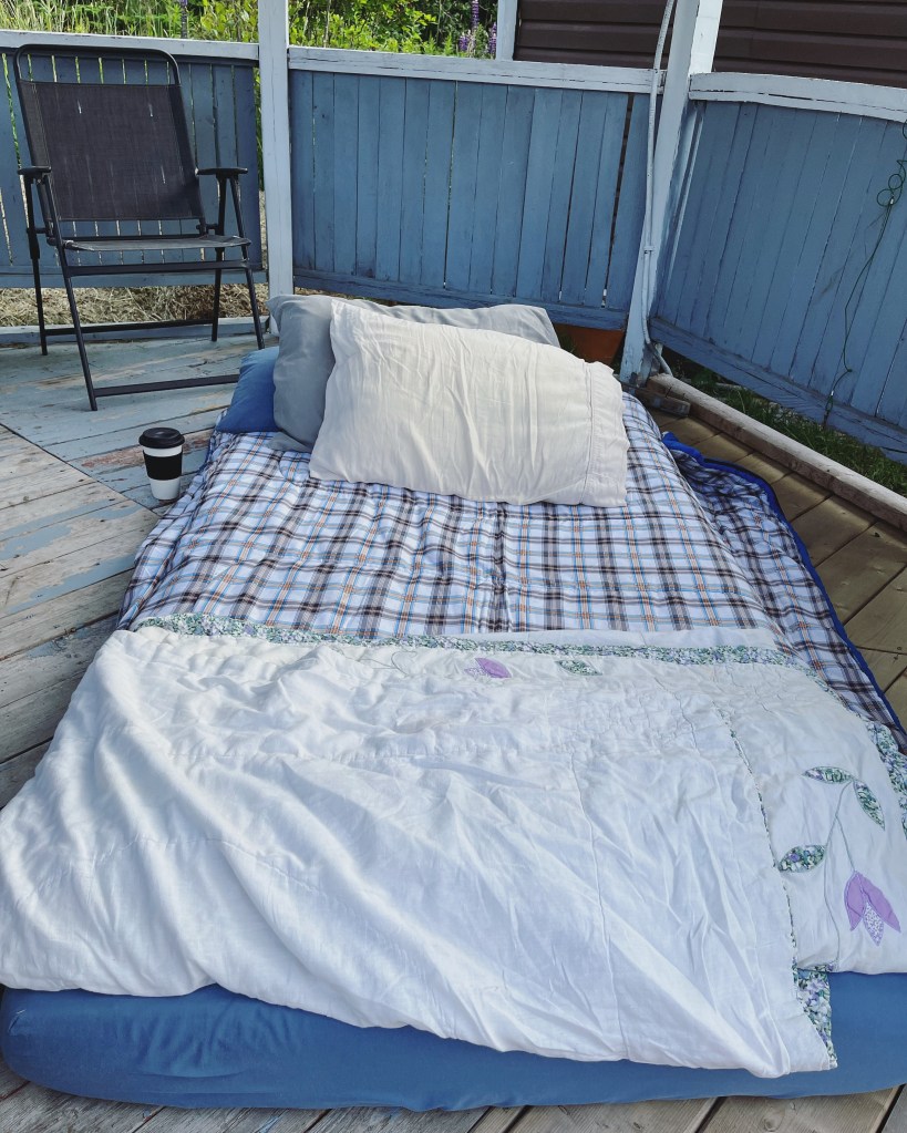 It wasn’t too shabby, actually. I dragged my mattress out, brought pillows and blankets (I mean, I like camping, but if you’re within mattress-dragging distance why would you not?), and settled in to…