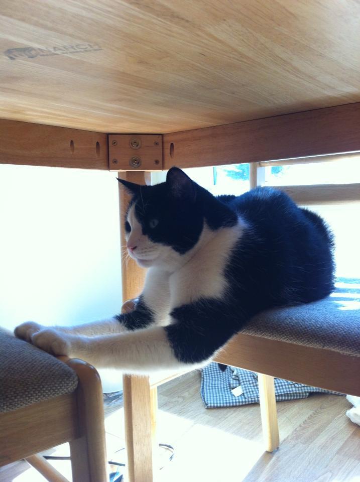 Of course, this meant it was Lucy’s turn. What she lacks in vocabulary she makes up in persistence and volume*. “Mew? Mew! MEEEW! MEEEEE, YOOOOOUUUUUU!!!” and then a “WOO!” or two for good measure.