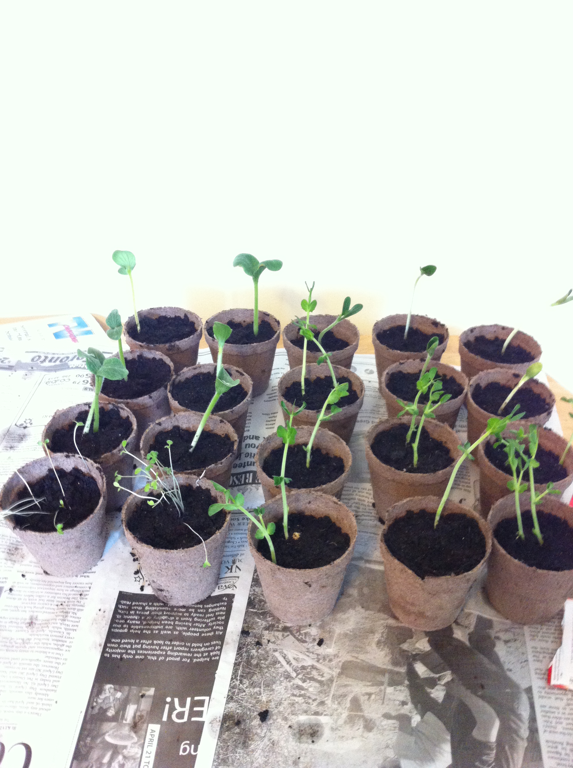 I’m not unreasonable. The non-starters went, as did the ones that couldn’t be bothered to lift their lazy heads out of the dirt until the previous day. But a strong-looking plant that just happened to be smaller than its soil-mate? Up yours, Jiffy Pots, they get to grow on, too.